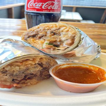 Texas Style Pork Chorizo Folded with Eggs, potatoes, Beans, Pico De Gallo, Cheese and Sour Cream